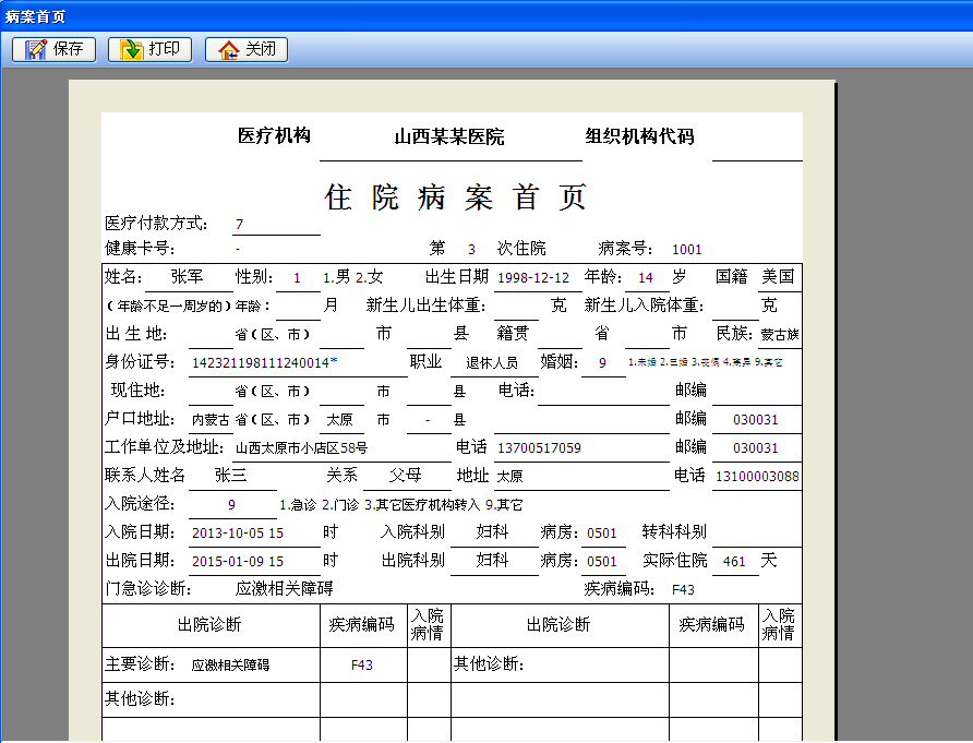 6. 病案首頁格式是山西省最新格式,病案信息自動生成,簡單、準(zhǔn)確、快捷。