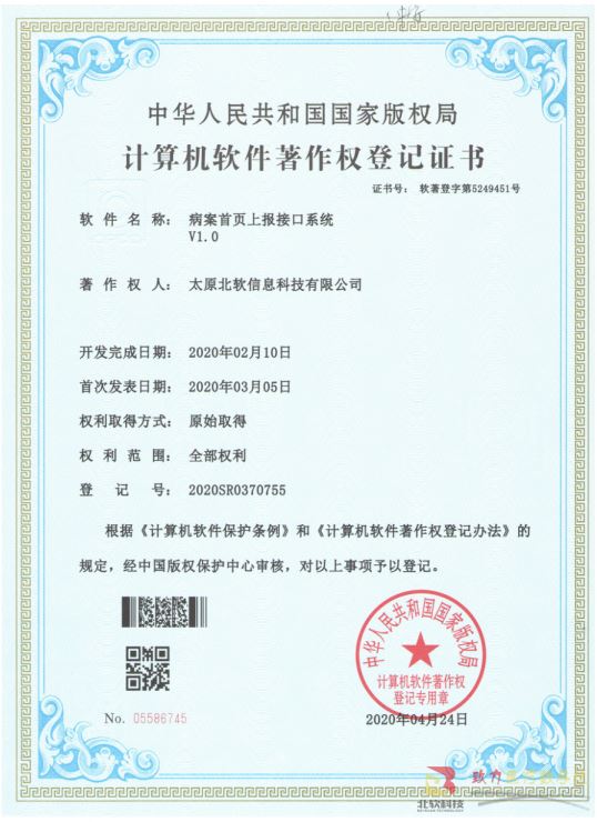 熱烈祝賀公司獲得《病案首頁(yè)上報(bào)接口系統(tǒng)》軟件著作權(quán)!