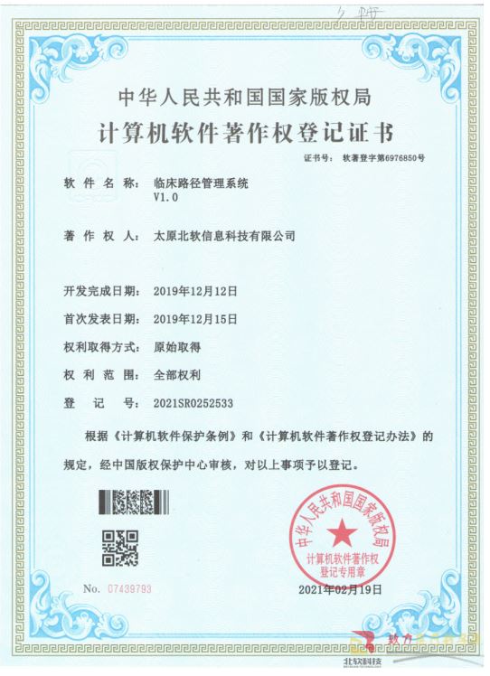 熱烈祝賀公司獲得《臨床路徑管理系統(tǒng)》軟件著作權!
